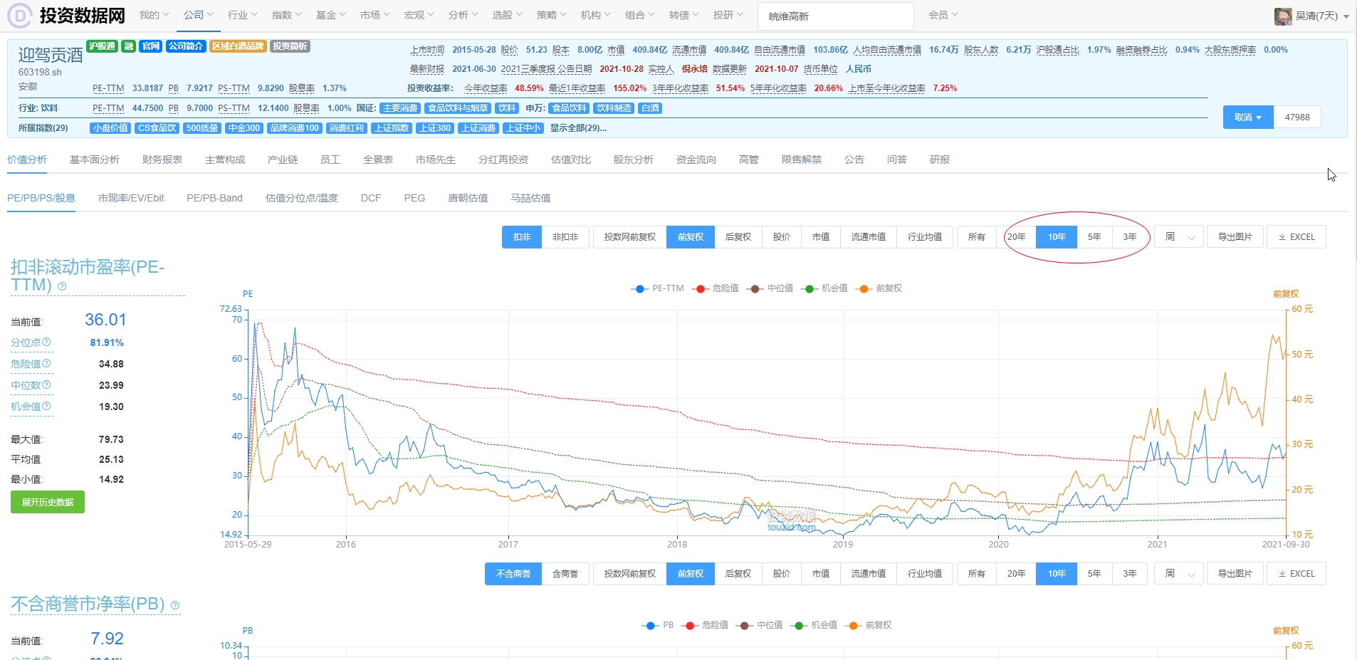 在股票价值分析->PE/PB/PS/股息中分位图,选择时间周期缺省固定为10年,可否如其它平台根据用户选择(比如选5年)确定缺省值,即下次打开其它股票也固定为5年,谢谢!
